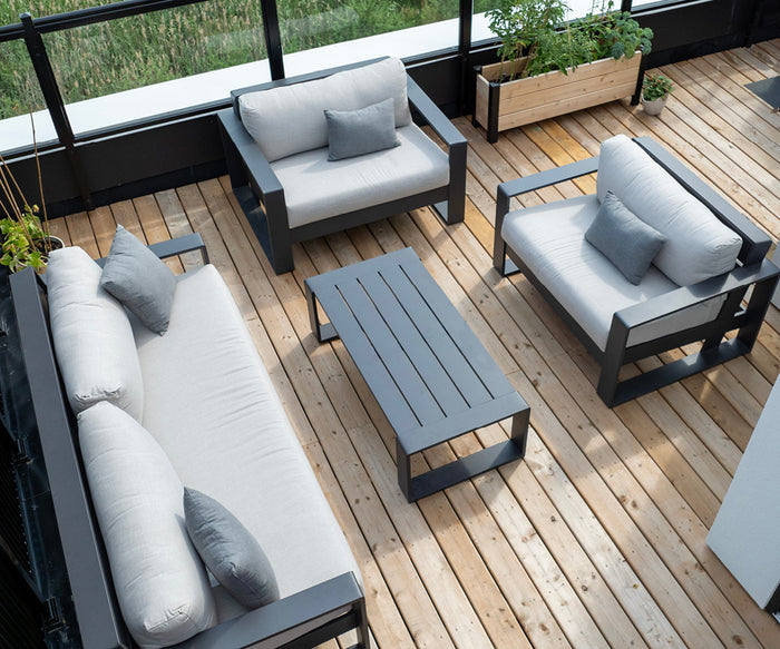 For over ten years, Toja Patio has sold furniture tailored to the needs and lifestyle of North Americans. That commitment continues with the North American-made Aluminum, bringing modern design and lasting quality to outdoor living.